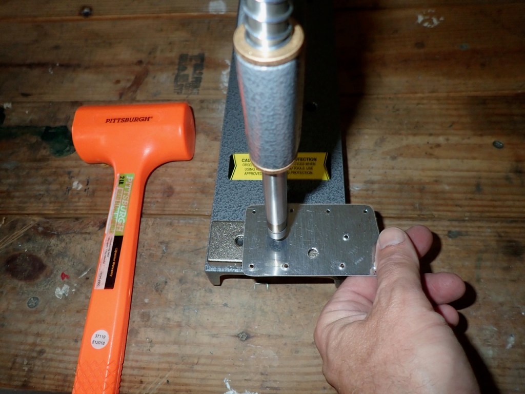 After deburring the edges of the cut, doing some match drilling, and then dimpling some of the holes, it was time to do my first rivets. I used a combination of the squeezer and C-Frame. Hopefully soon I will purchase a longer yoke for the squeezer to reach the holes further in.