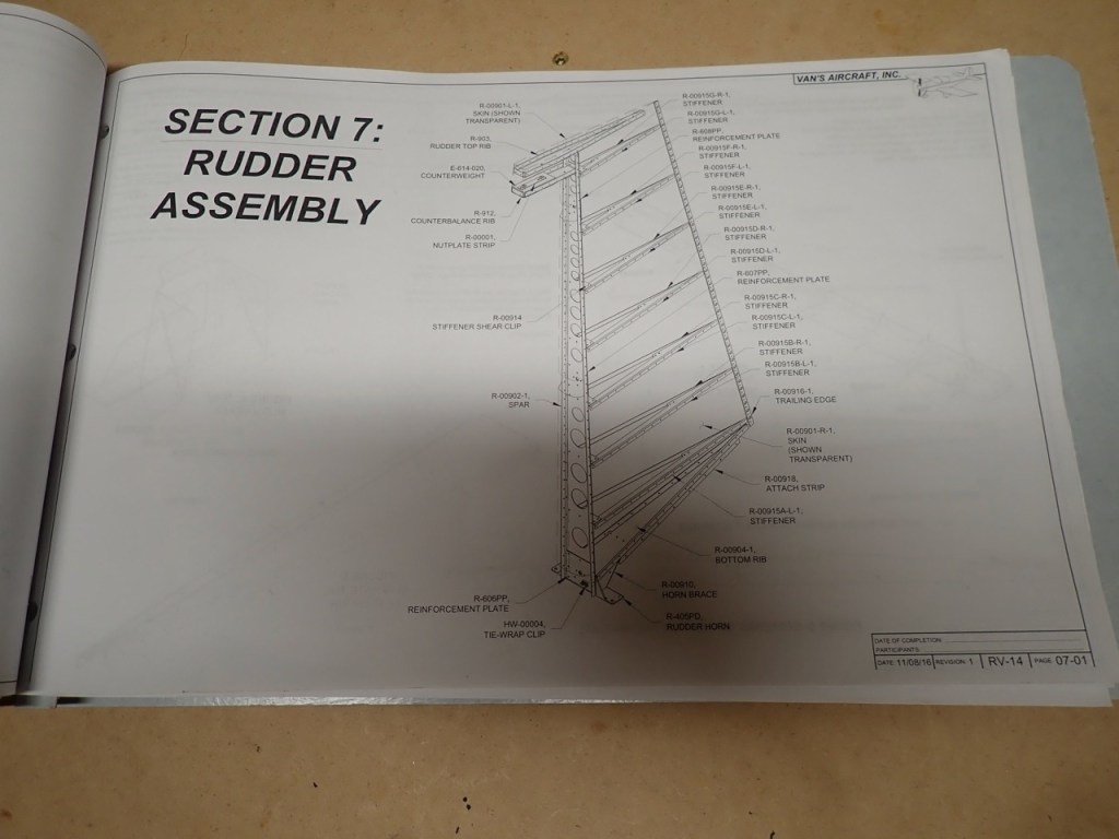 From looking at the plans for the rudder, the level of complexity appears to be increasing exponentially. This is mainly due to the assembly of the trailing edge of the rudder. This section of the rudder will require a “double flush rivet” technique of which I don’t think I fully understand at this point. Luckily the internet is full of excellent resources. Some of my fellow RV-14A builders have made incredible step by step records of their builds. I am not sure I will even come close to the recorded level of detail that these other guys are doing.
