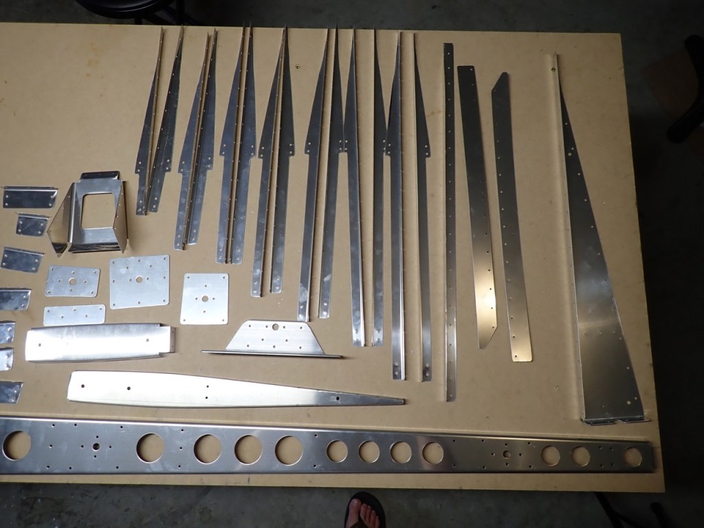 Like the Vertical Stabilizer, the Rudder assembly started out by gathering the various frame parts, removing the protective blue film, and deburring the edges of the parts. Deburring is basically removing all sharp edges of all the aluminum parts. Sharp, angular edges are a source of stress cracks that may show up later in the life of the airplane. Rounded edges reduce the possibility of stress cracks. This applies to all parts used inside the skins, all holes in all the parts, and the edges of the skins. A variety of methods can be used including dedicated deburring tools, scotchpads, a scrotch-brite wheel on a grinder, files…even a large drill bit can be used to deburr holes. I am still experimenting with all of the above to determine which is best.