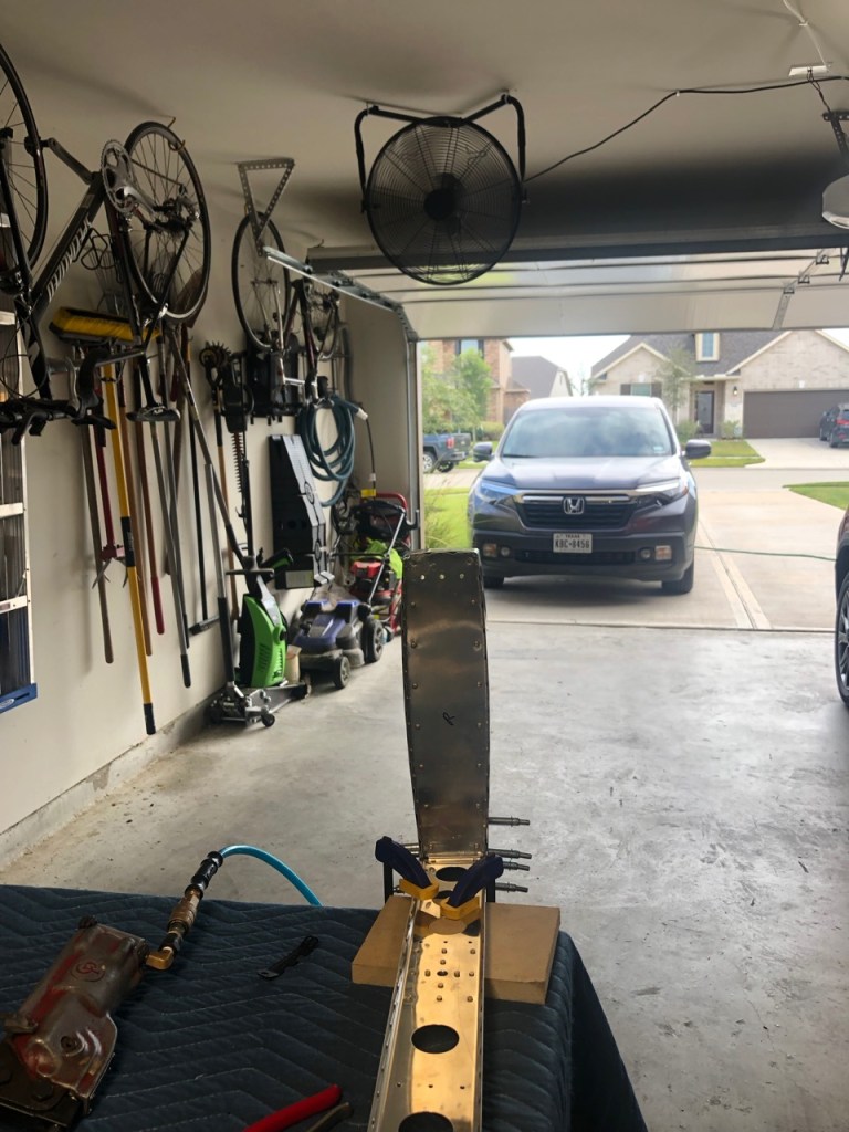 And lastly, the overhead fan is a life saver in this south Texas heat. It actually makes it bearable inside the garage. It won’t be long before this open space contains an empennage.