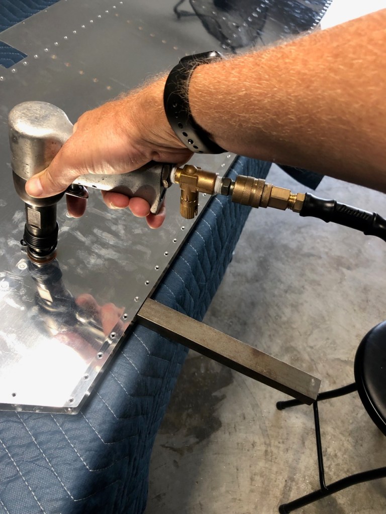 I received a tip (from another RV-14A builder located in West Virginia), that a pneumatic pop rivet gun from Harbor Freight will make my life so much better. Well, he was absolutely correct. Previously, pop rivets made me cringe due to squeezing the handles together. Now, it is as simple as pulling the trigger.
