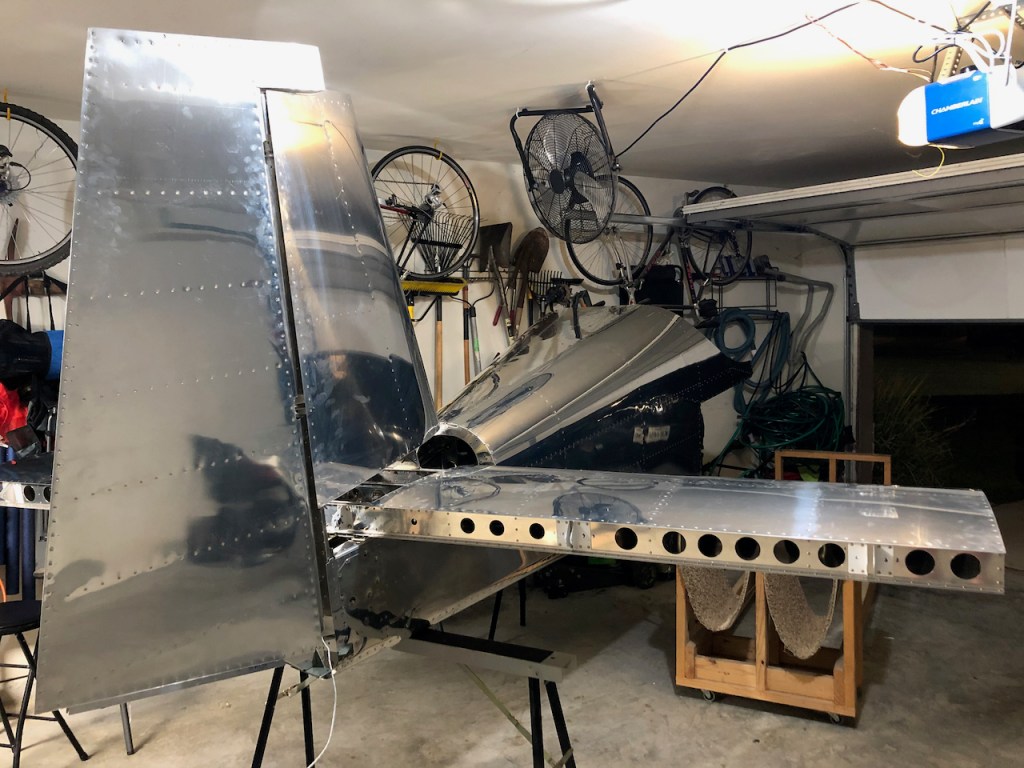 The various pieces were then temporarily attached to the Aft Fuselage. If you squint really hard and hold a hand over the forward part of the aft fuselage, it appears that an airplane is actually inside the garage.