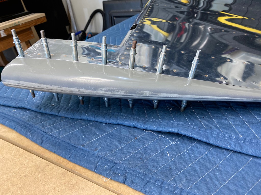 The fairing was then drilled with evenly spaced holes and the holes were used to match drill holes into the rudder bottom which eventually were used for the installation of nut plates. This failing is the only fairing attached with screws and nut plates. The rest are riveted to the respective part.
