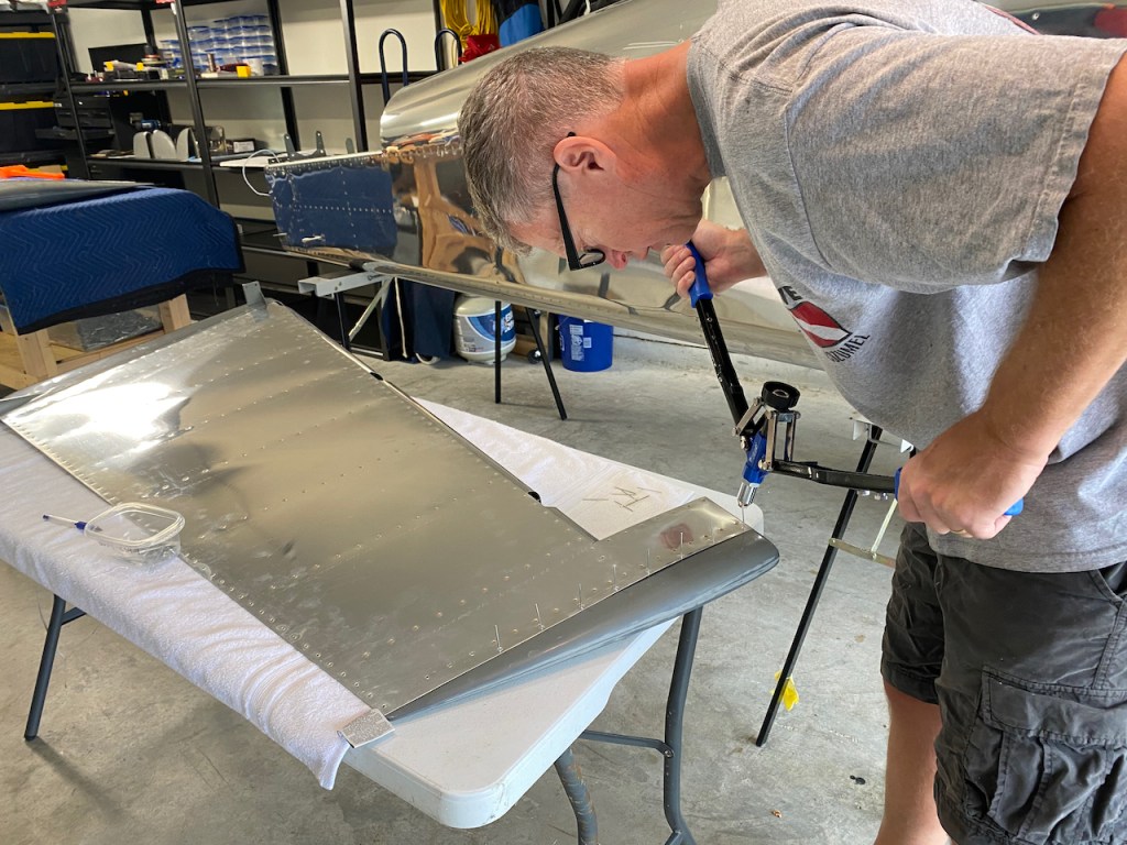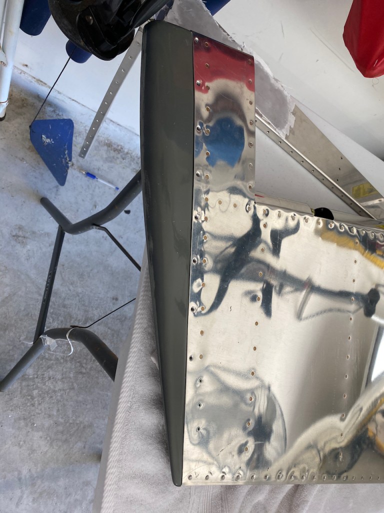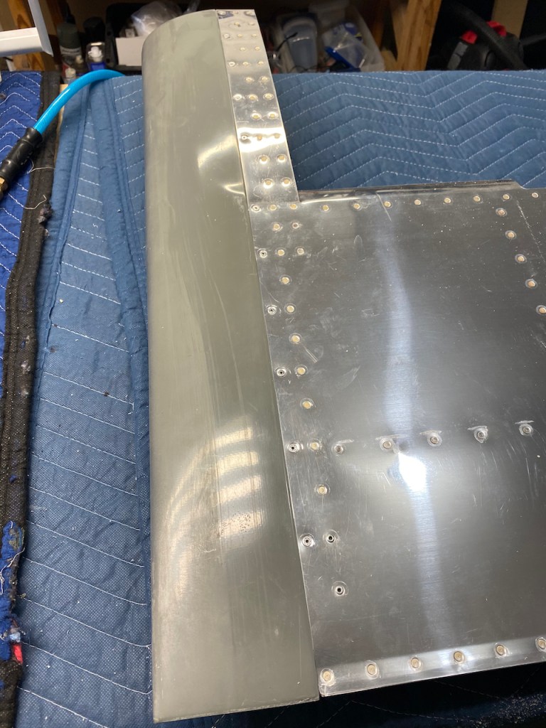 The fairing for the top of the rudder was attached using blind rivets after match drilling and dimpling the skins.