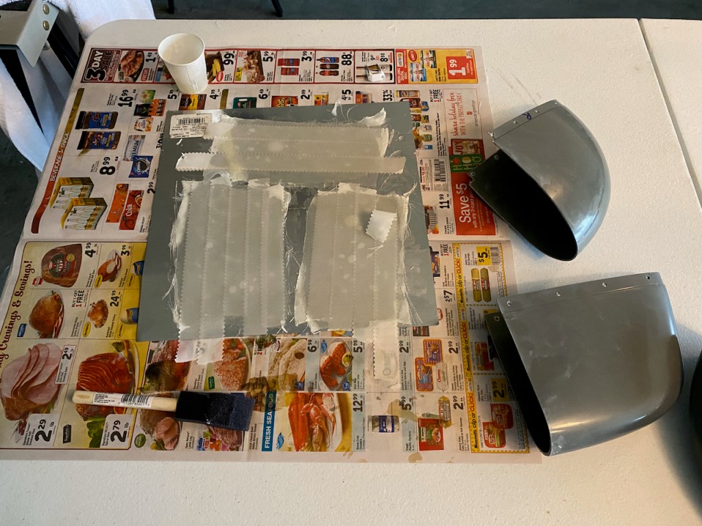The Wing Kit delivery was only hours away so the Fairing Attachment section was about to wind down to be completed later. The tips that attach to the Vertical and Horizontal Stabilizer required to be trimmed to match the HS and VS fairings, and then a fiberglass piece needed to be fabricated to go into the open side of the tip. Below is my attempt to do this where I layed up a couple of pieces of fiberglass cloth with epoxy and then covered it with a peel ply layer (to be removed after curing leaving a smooth finish). The results of this are to be determined later because ABF Freight is knocking on my door….