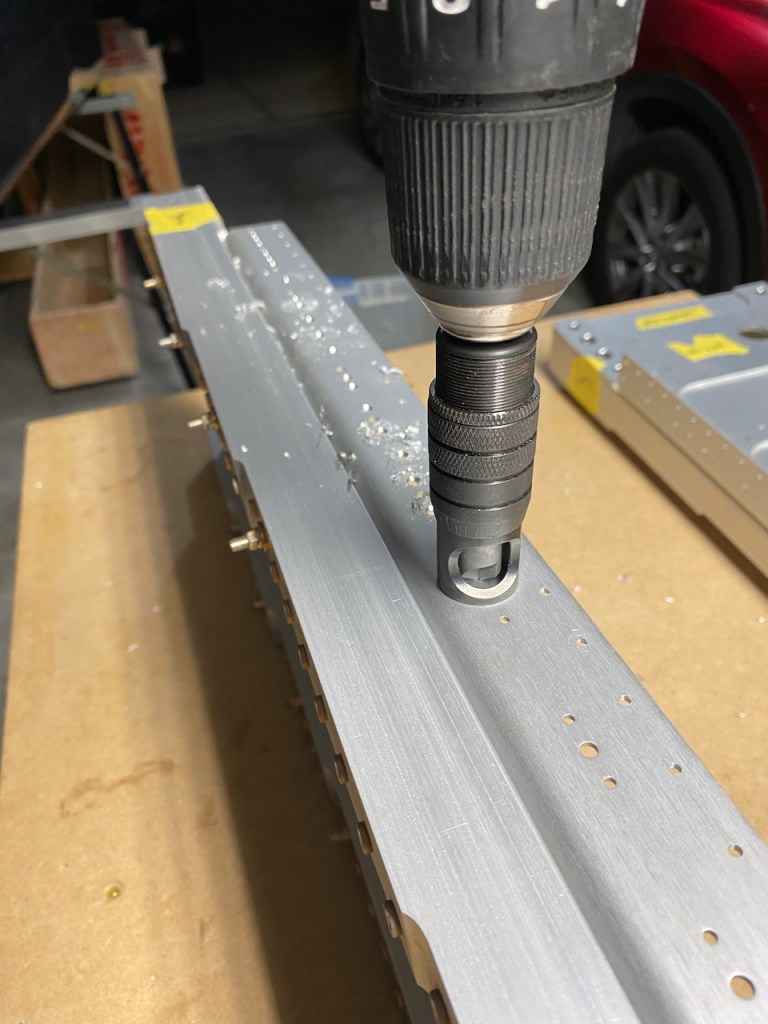 The first steps involved preparing the Wing Spars. These are two pieces manufactured by VANS. My guess for this is mainly due to the huge rivets installed along with length of the spars. I wanted to be careful with this because I certainly did not want to pay for a replacement spar due to a mistake. I have no idea what one costs.