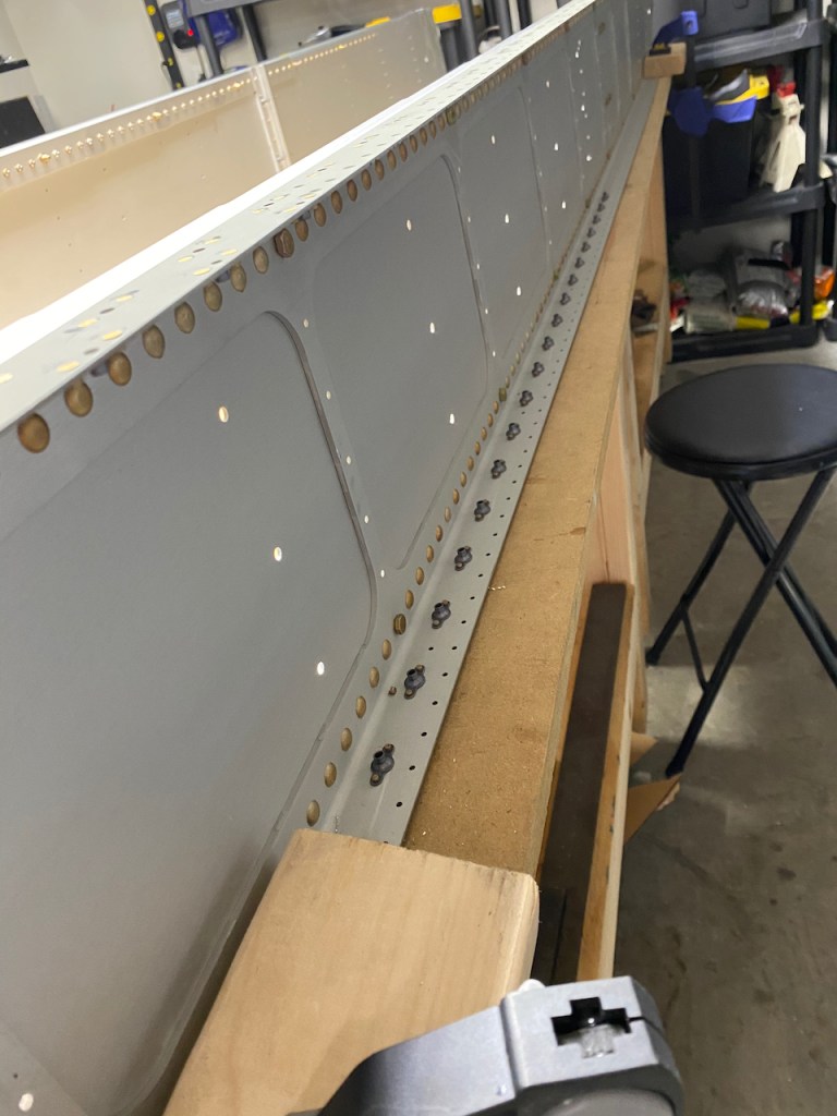 After countersinking, about 89 Nut plates were installed. Oh wait, I forgot to mention, on the Wing Section, everything is done twice – one for each wing. For now, I plan to do the two wings in tandem which means I will complete one step on a wing and then do the same to the other. So, this means, 178 Nut plates were installed on both spars.