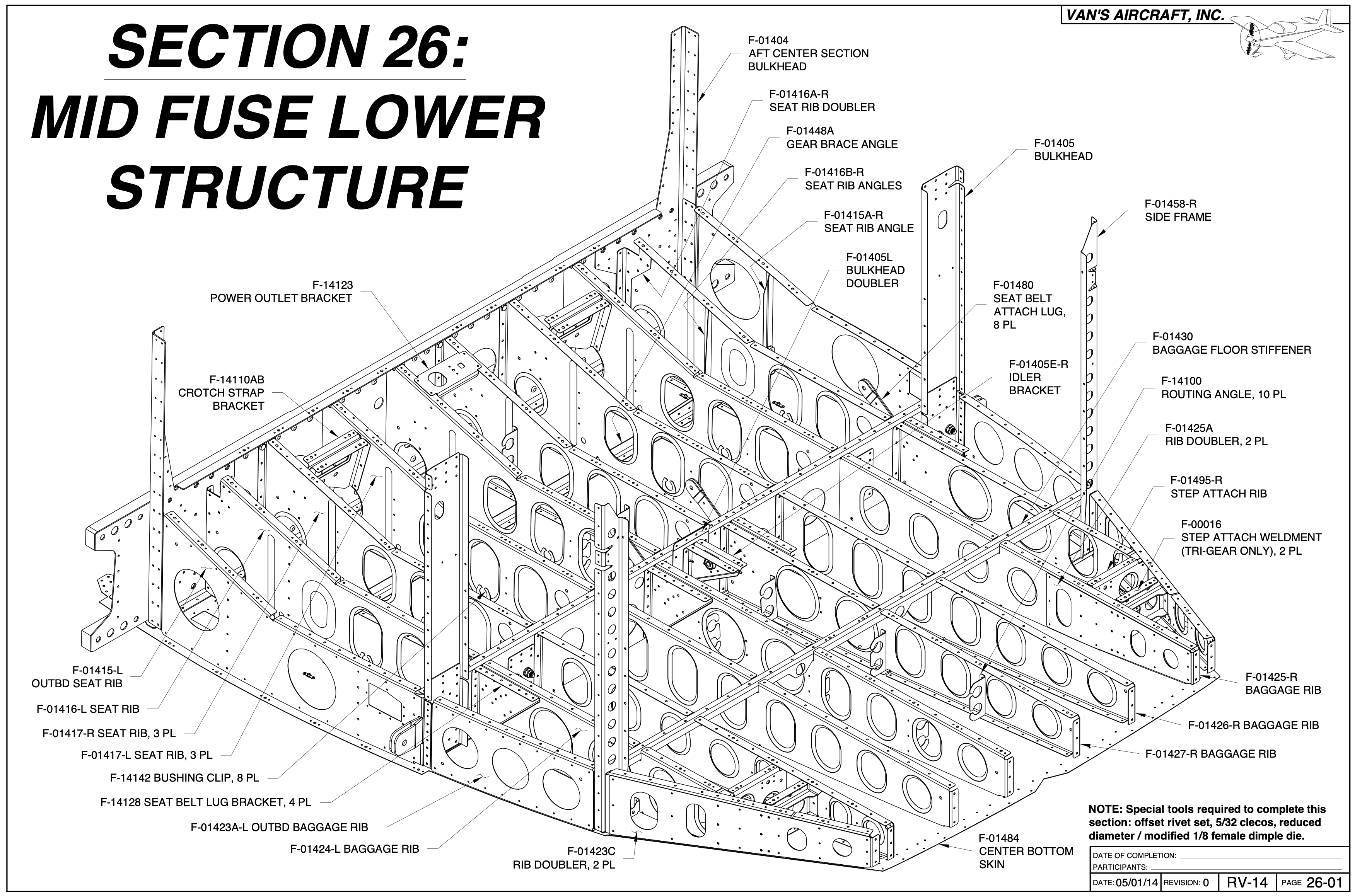 This section certainly took a while. As you can see in the diagram above, it contains a tremendous number of ribs which eventually turn out to be the floor of the fuselage. Basically, the seats in the airplane sit just above these ribs.