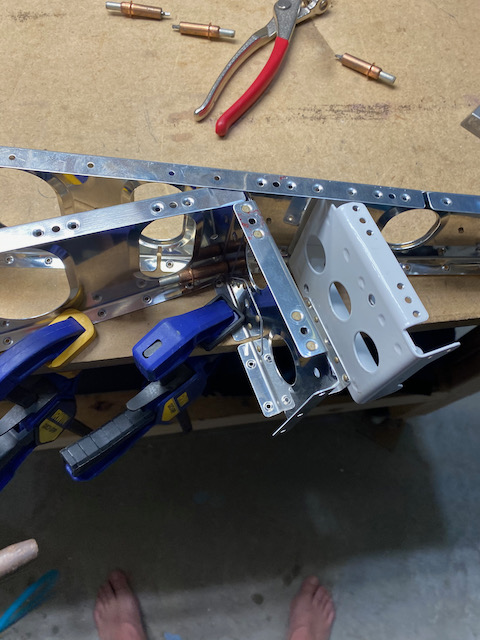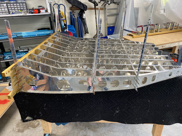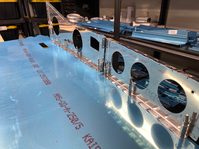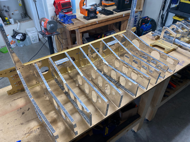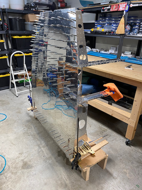The ribs on the side of the lower structure were cleco’d to the bottom skin. The purpose was to flute the flanges to make sure they curved in the correct amount to correspond to the curvature of the bottom skin.