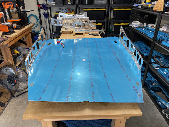 I didn’t get a photo while doing it, but the large bottom skin needed to be dimpled like every other skin. I read somewhere else that there were over 600 dimpled holes in this section.