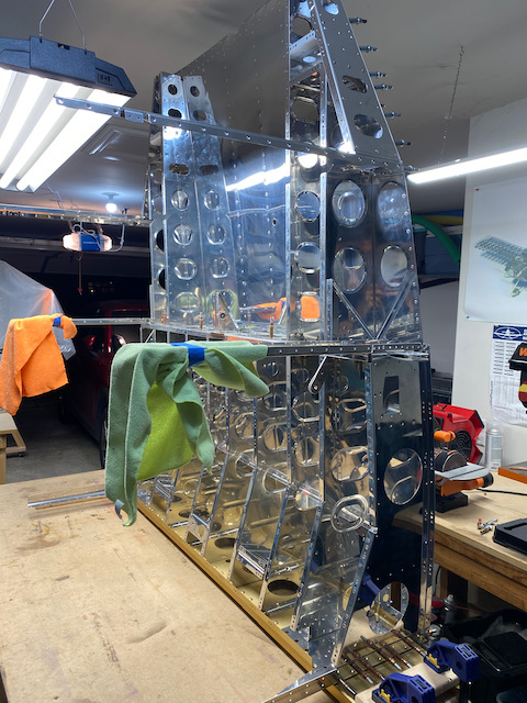With my co-pilot, I eventually got through all the riveting of the bottom skins to the rib sections. This was kind of a big job.