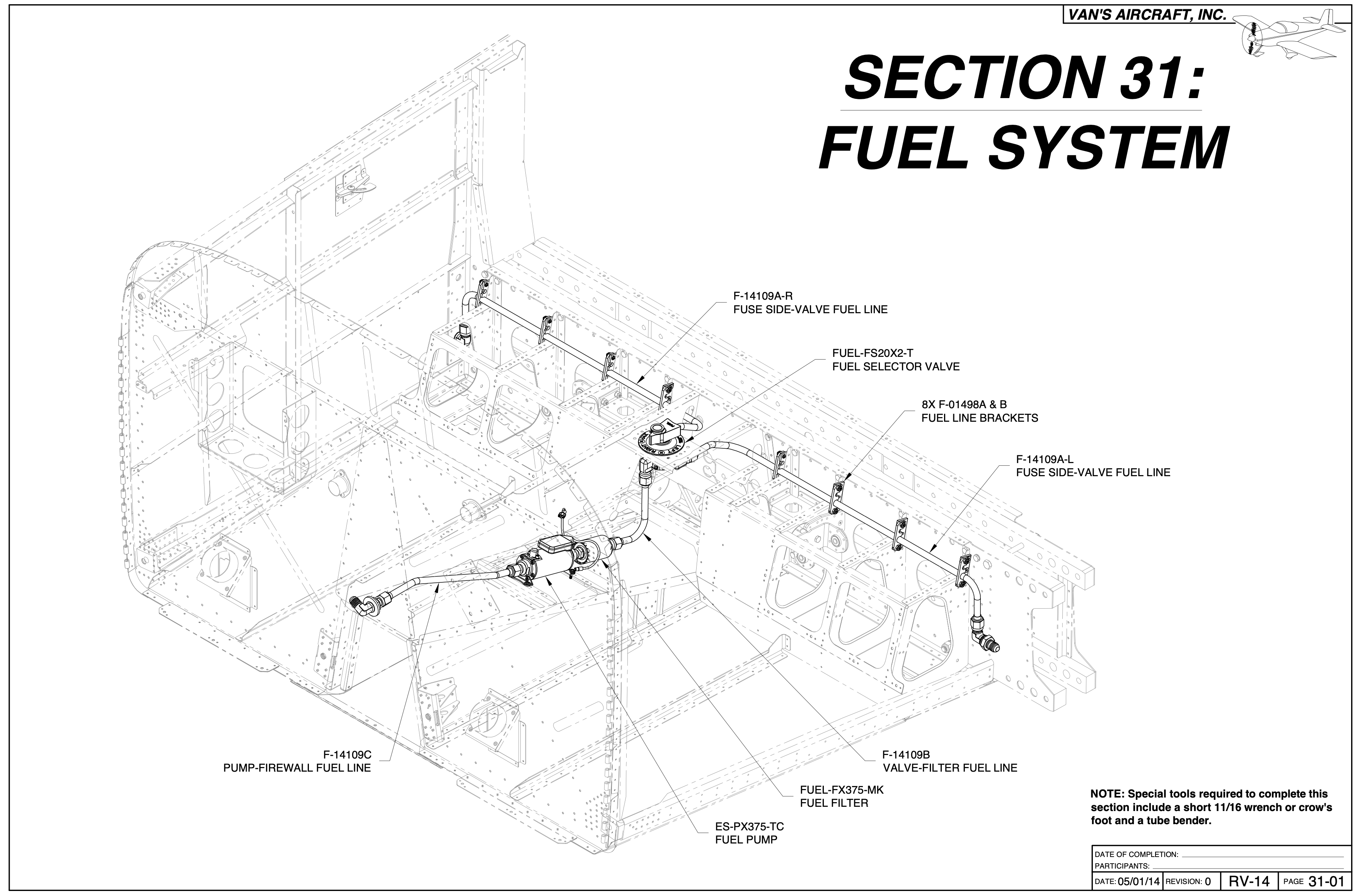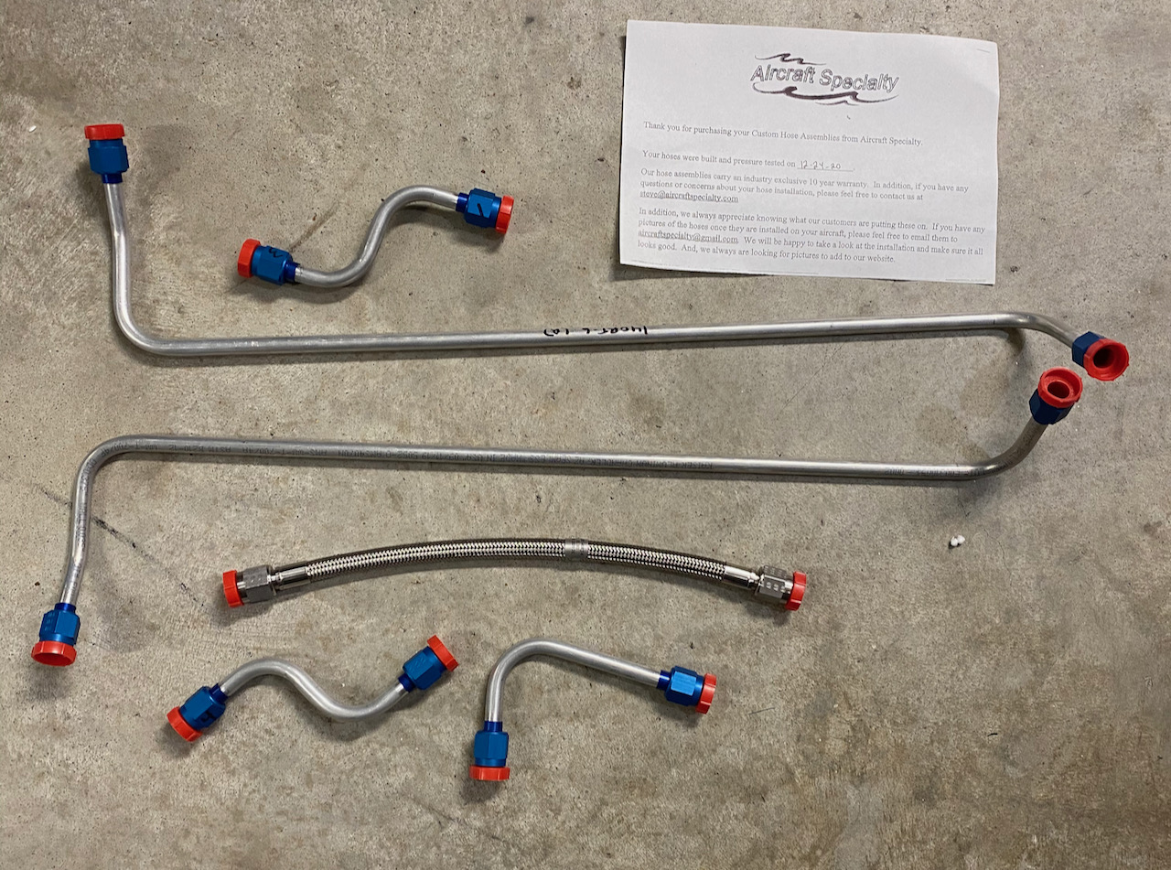 Here we are installing the fairly vital and important fuel lines inside the fuselage. I opted to buy the fuel tubing lines pre-bent and flared from Aircraft Specialty. I think it was money well spent because the lines aligned perfectly and saved several hours of fabricating the tubing myself.
