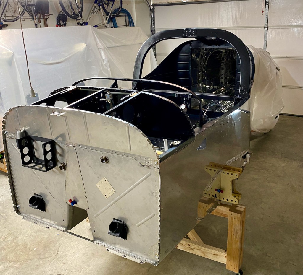 And lastly, the roll bar was riveted to the fuselage. A quick trip to the paint booth left me with an all black rollover structure.