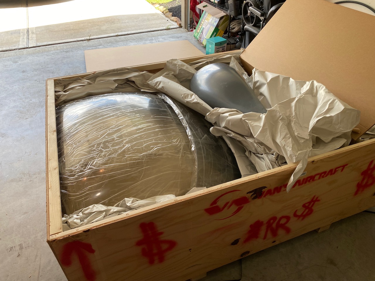 The big crate contained really big items like the canopy, wheel pants, and cowling. The main landing gear is on back order.