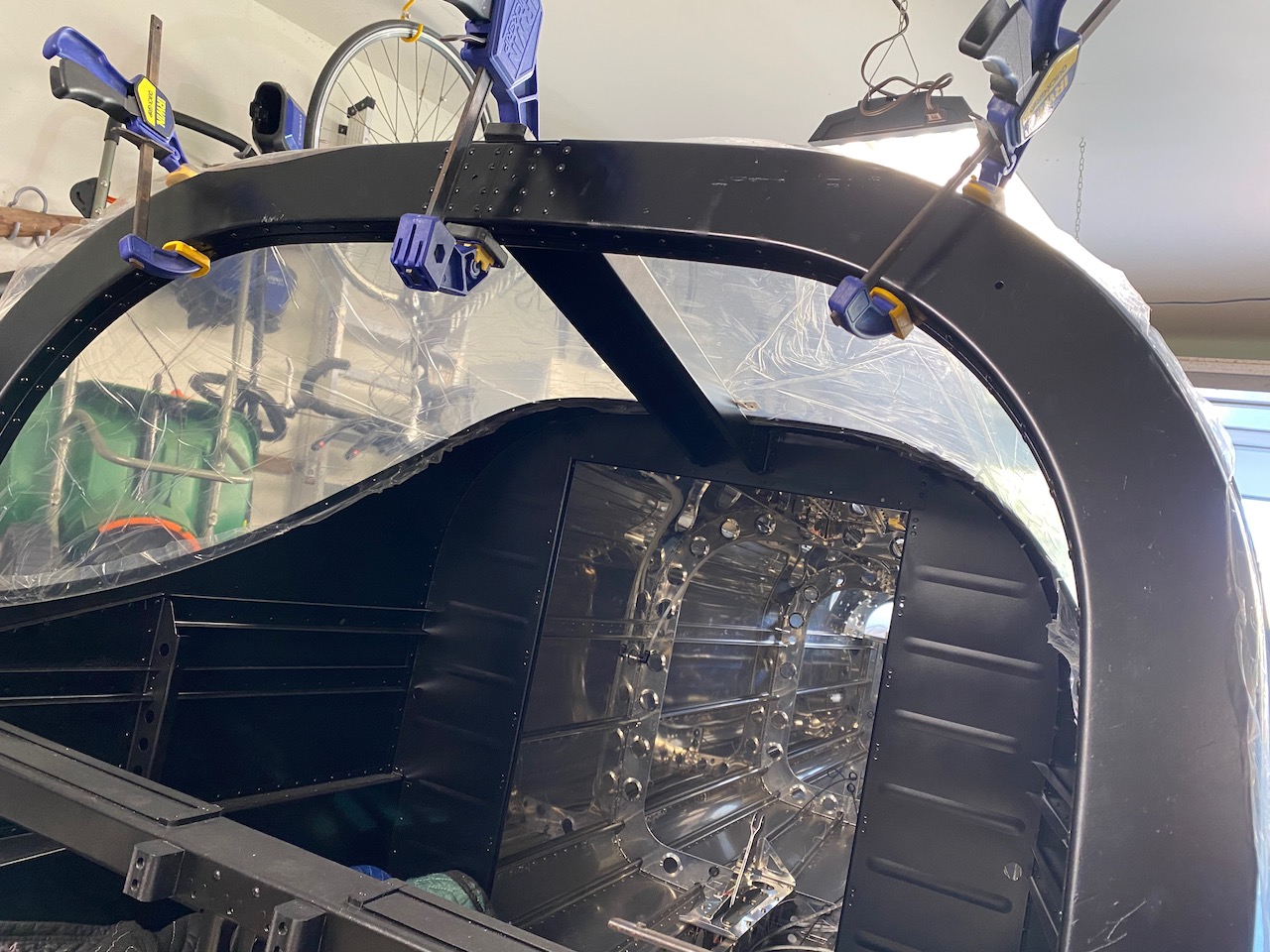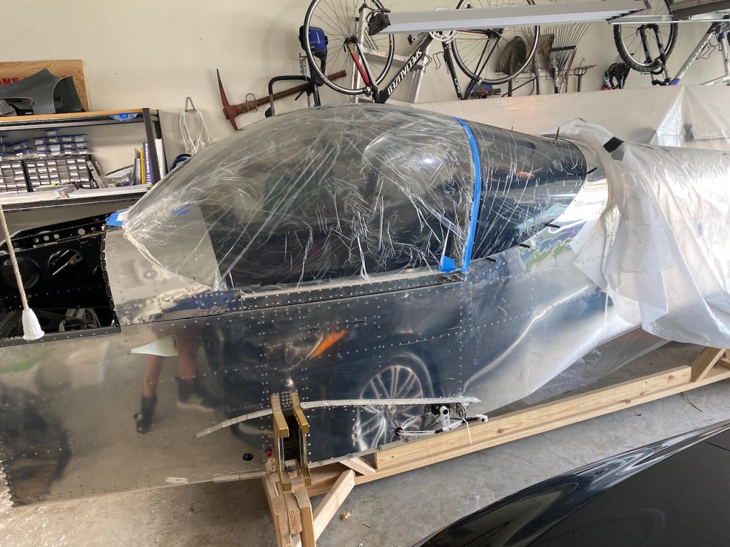 The canopy frame roll-bar was the last part to be attached, and it was on to the airplane.