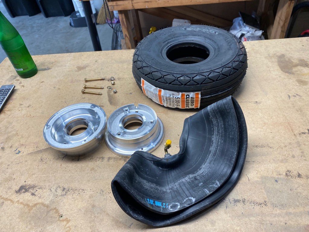Next, it was on to building the wheels which involved packing bearings with grease, inserting an inner tube, and then bolting the two halves of the wheels together. The wheels were then attached to the nose strut and mains.