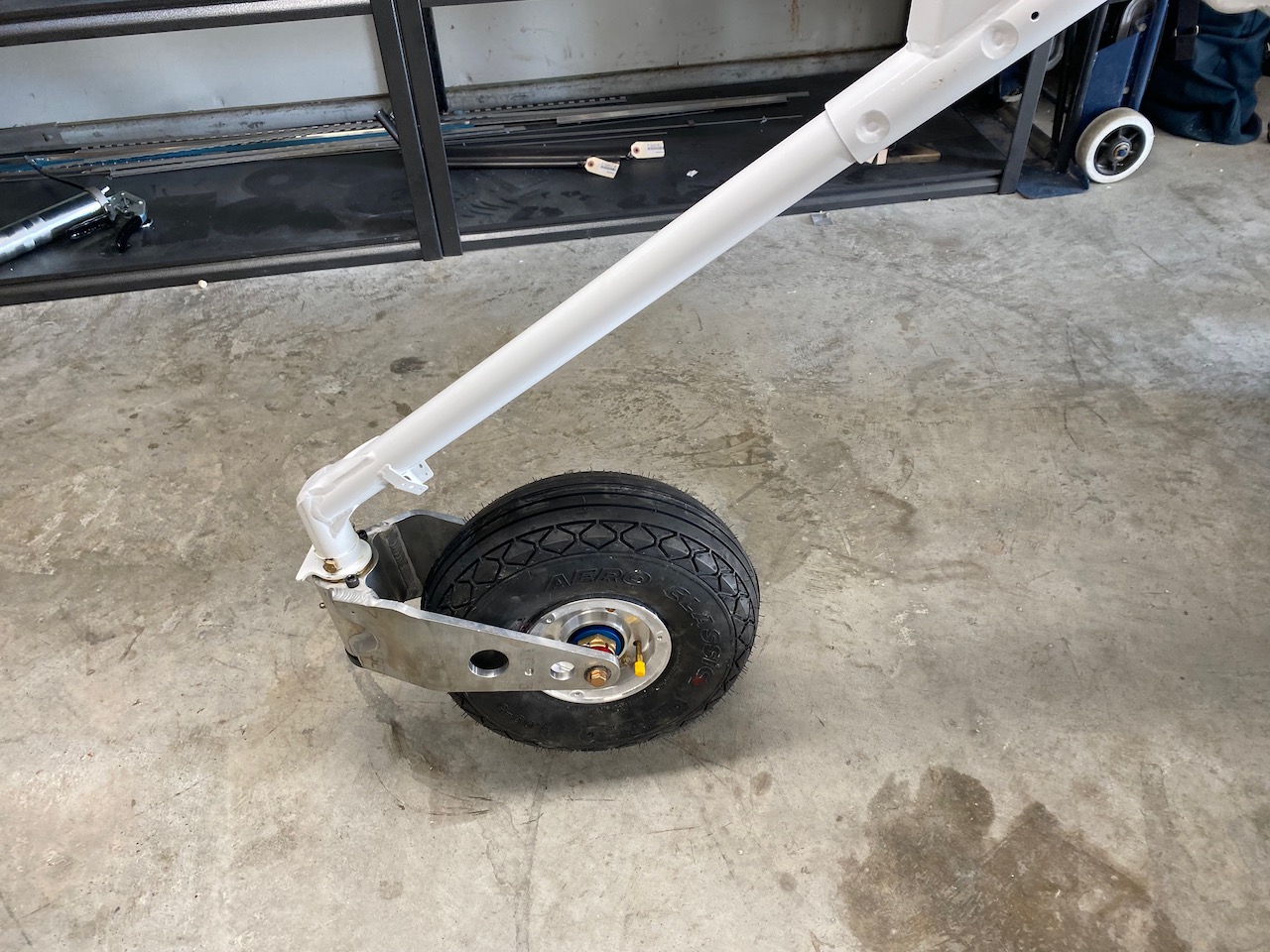 I guess I don’t have a lot of photos of the process but the nose gear is a single large strut attached to an elastomer pancake type thing that acts as a shock absorber. The nose wheel is free castering similar to Grumman Tigers and Cheetahs.