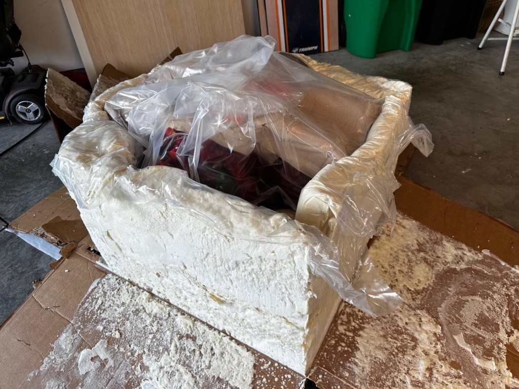 After about an hour of breaking away foam, Big Red made its appearance in a plastic bag with desiccant.