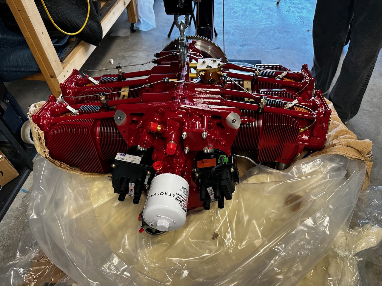 Because everyone asks, this is an aircraft specific, 4-cylinder, horizontally opposed, piston, direct drive, angle valve, fuel injected, 390 cu in, 215 HP (at 2700 rpm), 308 lbs engine built by Lycoming (a division of Textron who owns Cessna, Beechcraft) located in Williamsport, PA. I think I answered all the normal questions. Oh yeah, the EXP is a slightly upgraded version of the IO-390 with slightly more horsepower due to a newly design cold air induction along with an Airflow Performance fuel injection system. The Thunderbolt part means the engine was hand-built by a small team of Lycoming technicians doing things like balancing the rotating system within tight tolerances, and polishing the inside of the cylinders resulting in hopefully smoother operation. Thunderbolts are also painted with a variety of colors (I chose red), they and come with Chrome rocker covers. And yes, a bit extra cost and longer lead times.