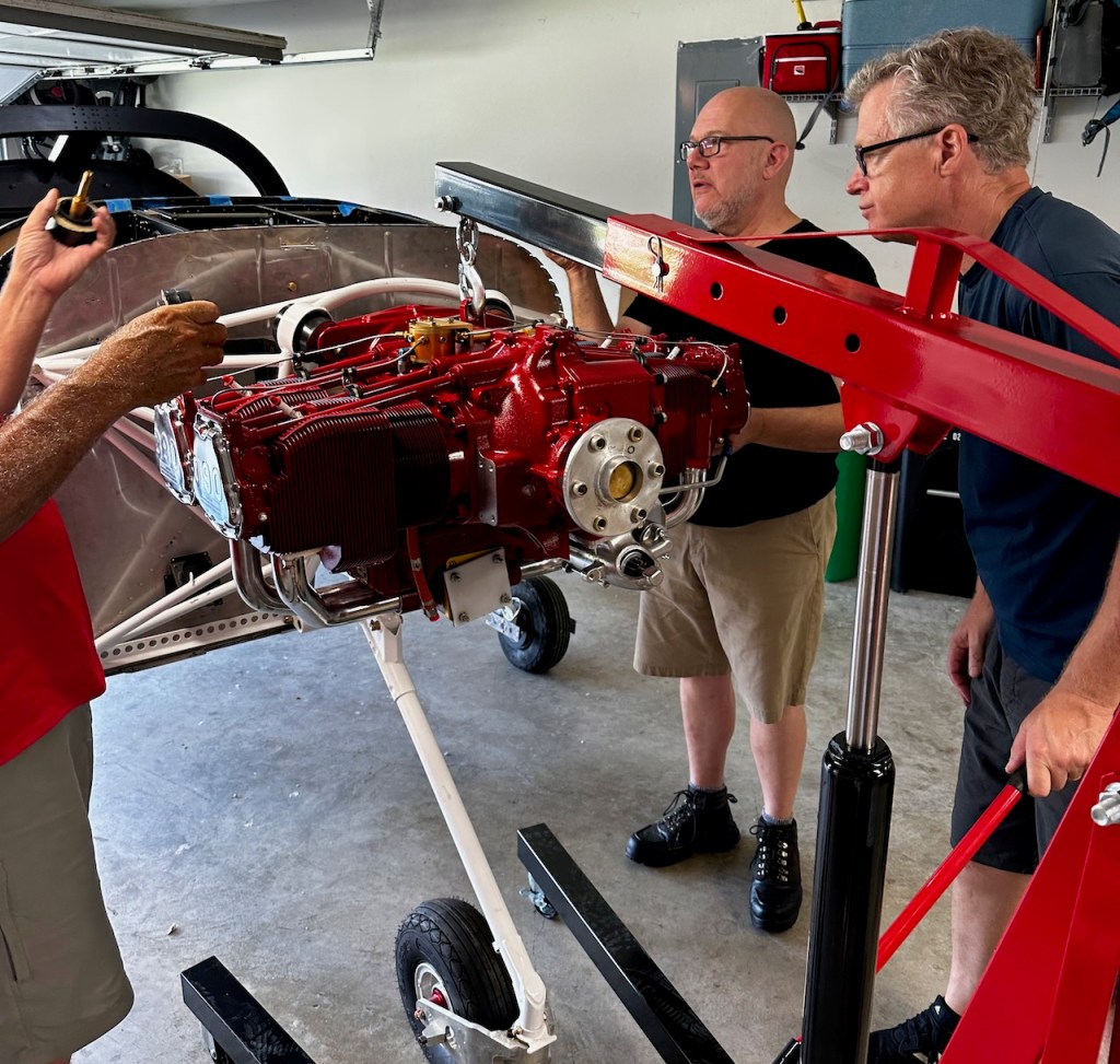 Hanging the engine is not all that difficult or time consuming but I had an expert (my EAA tech counselor) and a curious fellow pilot come by to offer their assistance. I might have been able to do it myself but the task was much smoother and more fun with the help.
