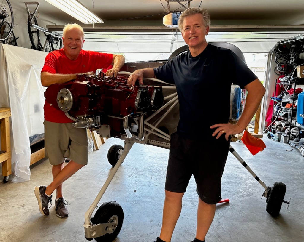 Many years ago I saw a blog where a bunch of old guys had an engine hanging party in a garage, and I always admired the look of satisfaction of the guy who was building his airplane in the garage. Well, this is the look of satisfied of a couple of old guys building an airplane in the garage.