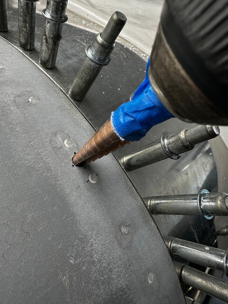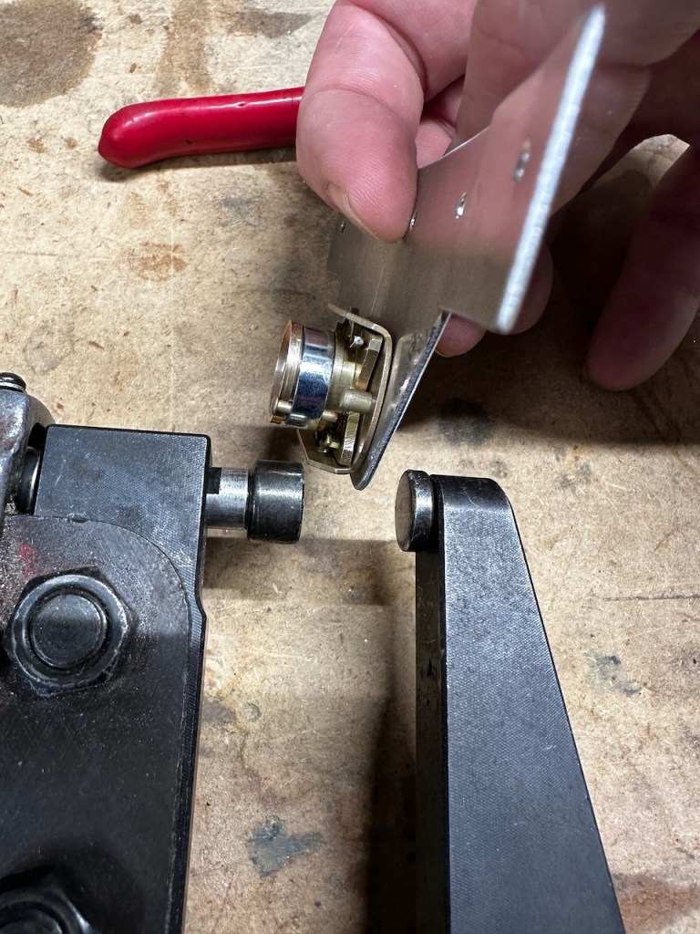 The receptacle was then riveted to the flange. I chose to remove the flanges to do the riveting.