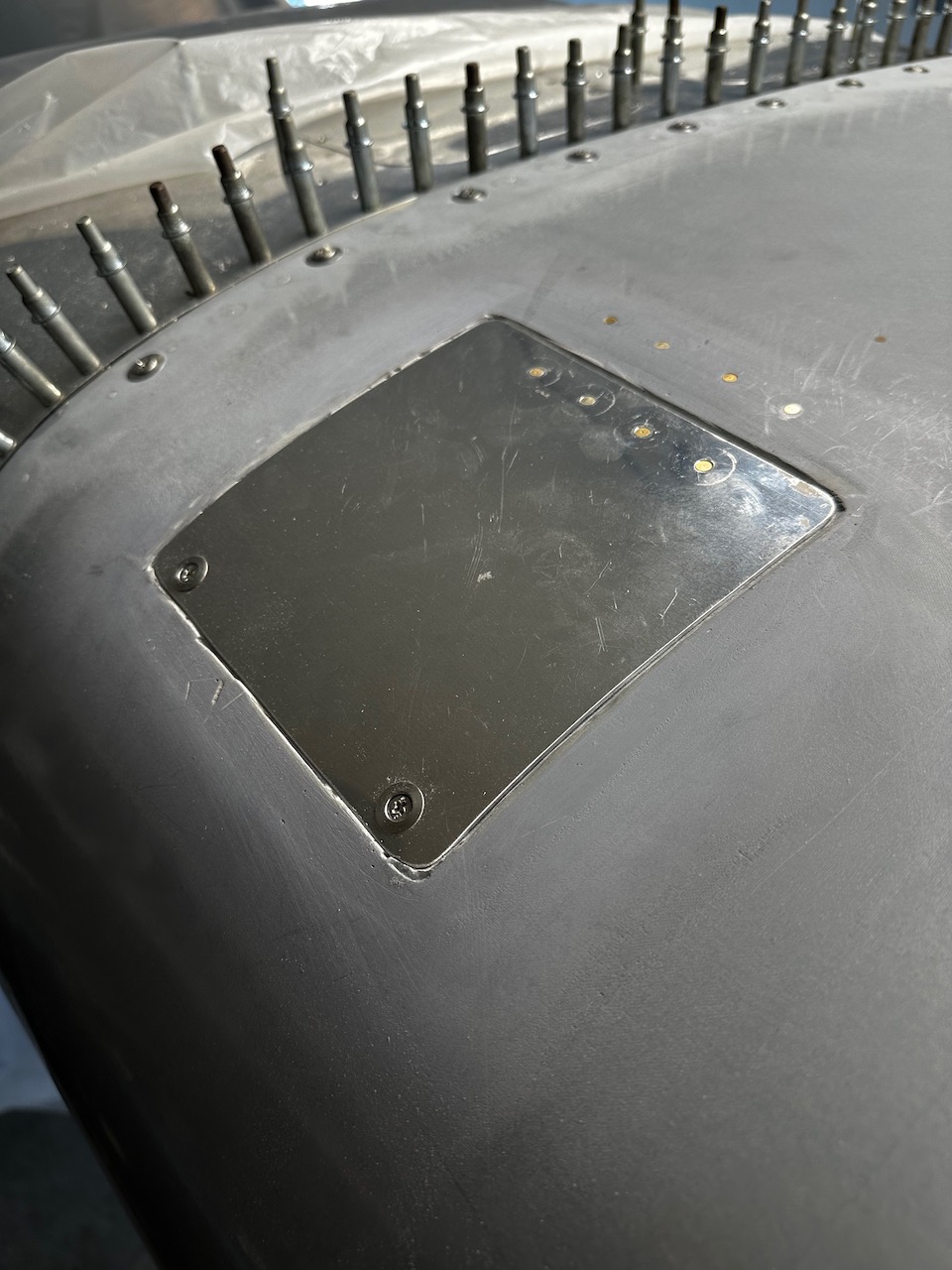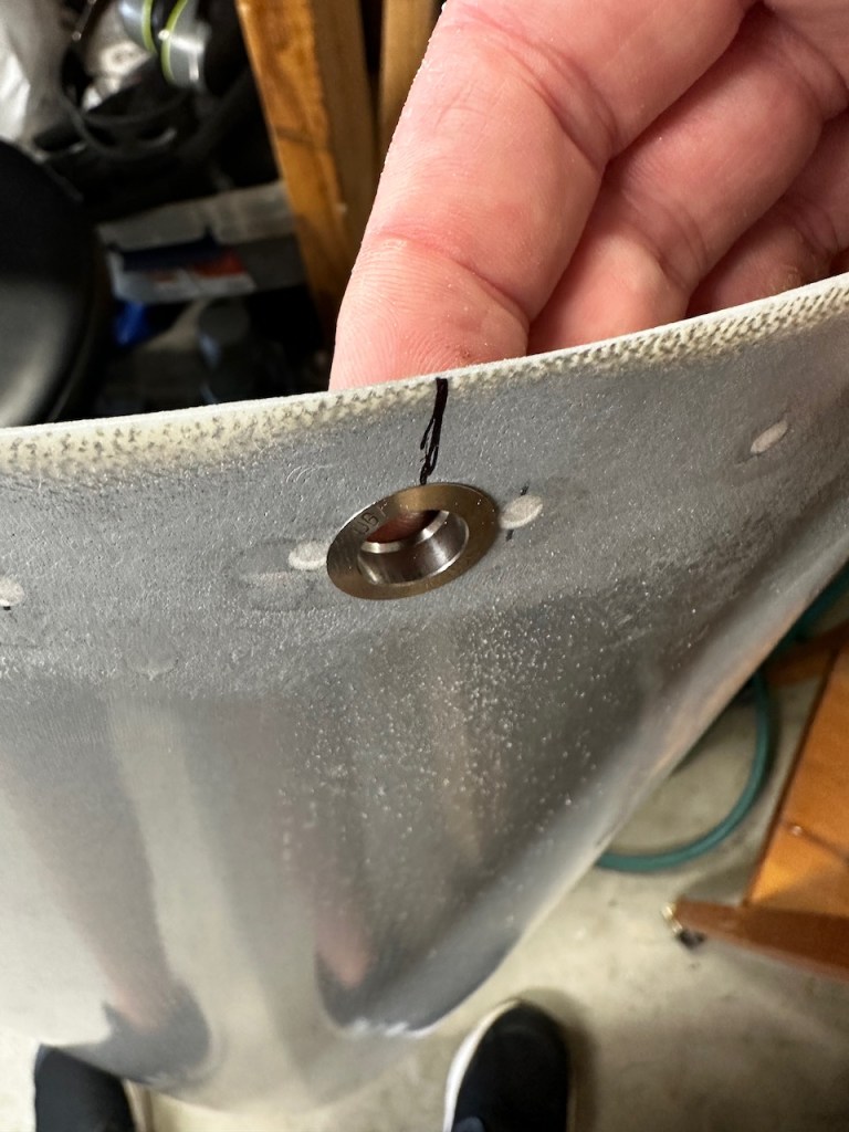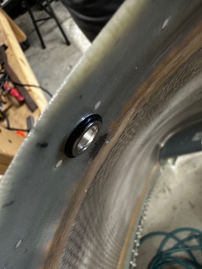 A grommet was placed in the hole in the cowling and held in place with an oring. After painting, the oring will be replaced by a steel retainer for permanent installation.