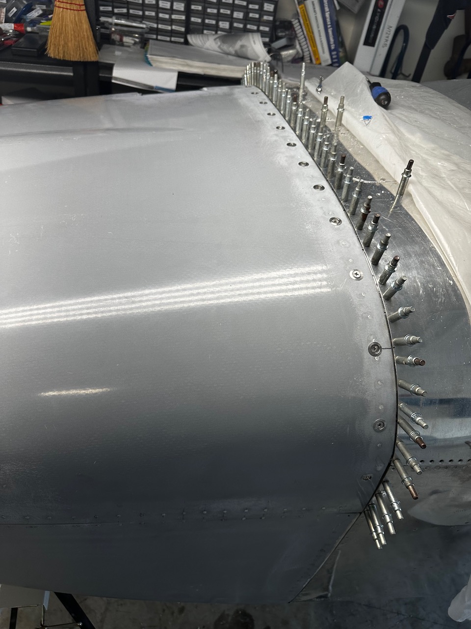 After a few nights work, all 17 Skybolts are installed. Now, no more scraping and burning my arms working with the hinge pins.