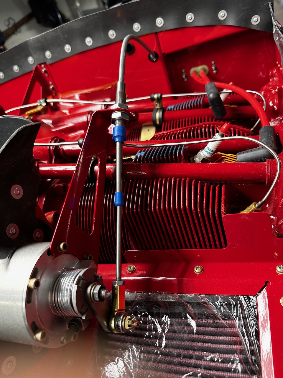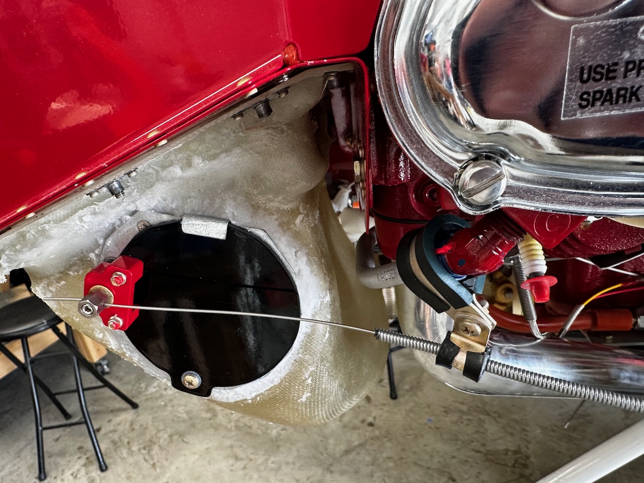 The alternate air cable is attached to a cover that can be opened from the cockpit. The purpose of this is if the air filter (covered in plastic in previous photo) gets iced up when flying through clouds, I can open this cover, which is inside the cowl and next to the engine. Then air will continue to flow to the engine which is kind of vital for engine operation.