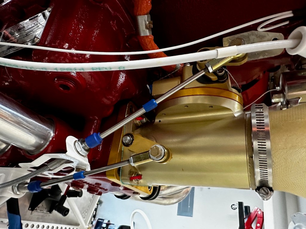 This shows the prop cable (that controls the pitch of the prop) attached to the propeller governor.