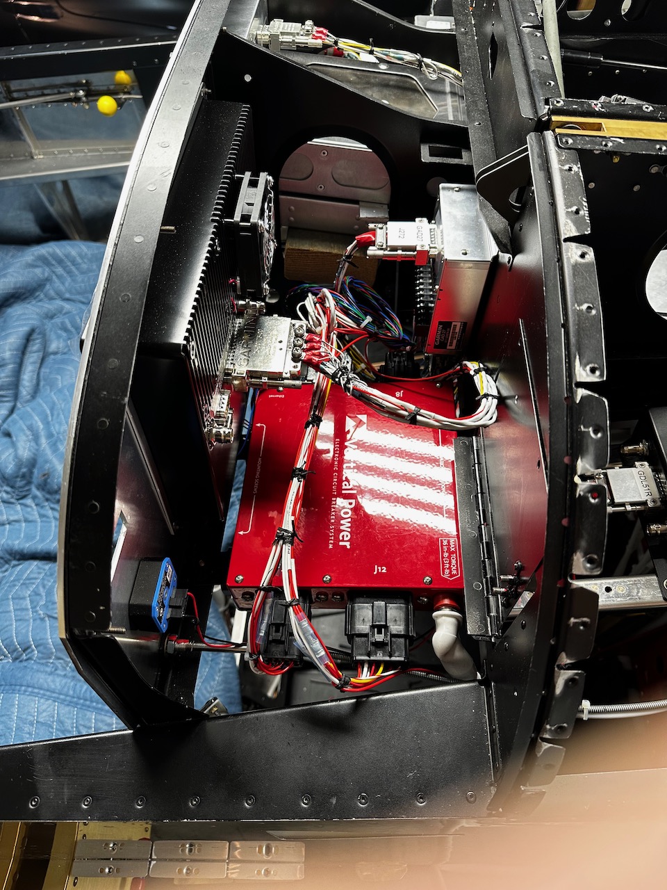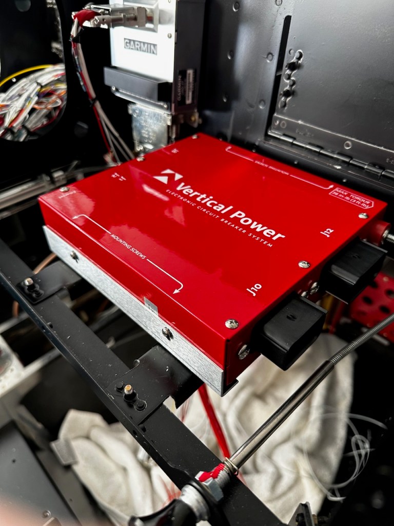 I decided to go with a Vertical Power VPX electronics circuit breaker. This eliminates dozens of physical circuit breakers that would need to be placed somewhere. The ECB’s are controlled through the G3X screens on the panel.