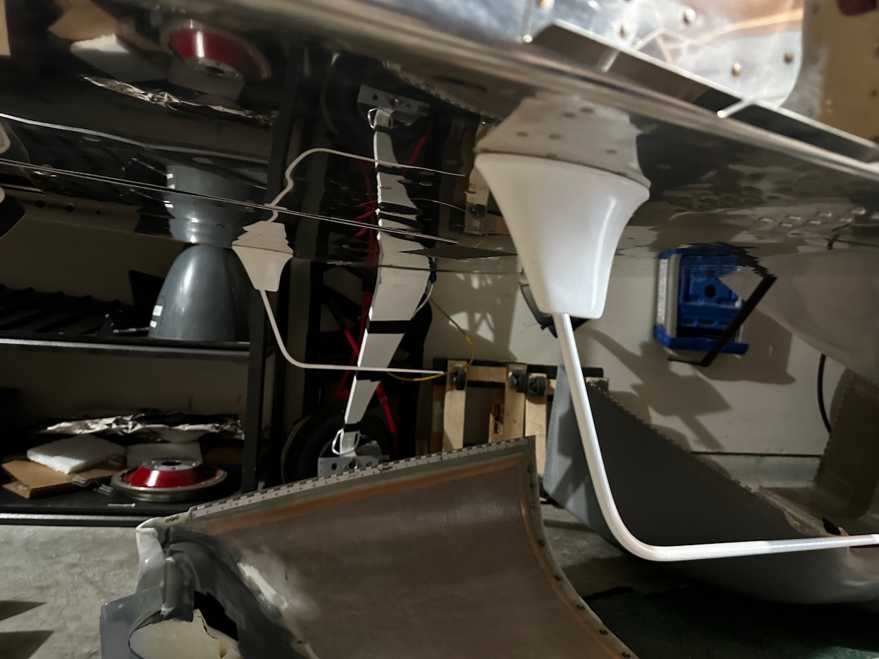 The two comm radio antennas are installed on the belly below the cockpit.