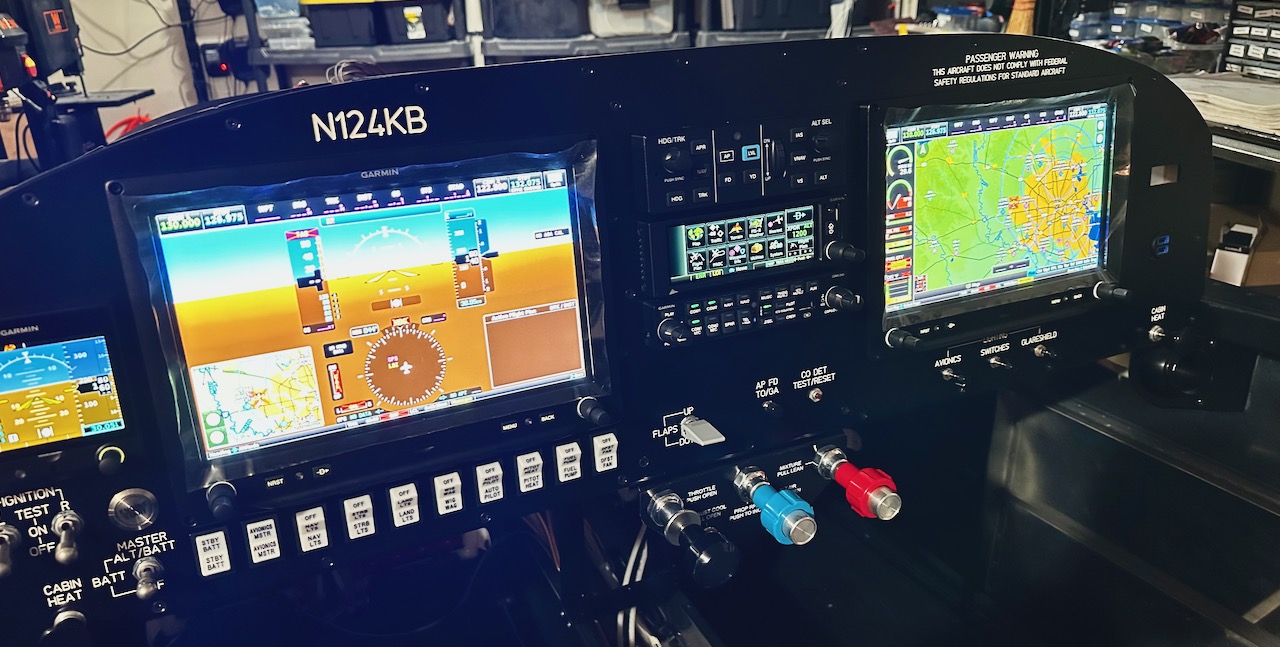 Several months ago I talked about the process of designing and planning the avionics panel. I also started the wiring of the panel harness which was then put aside until I could buy all the panel components. Well, today I can say all that work is complete. The all Garmin panel is up and running, and everything seems to be working properly.