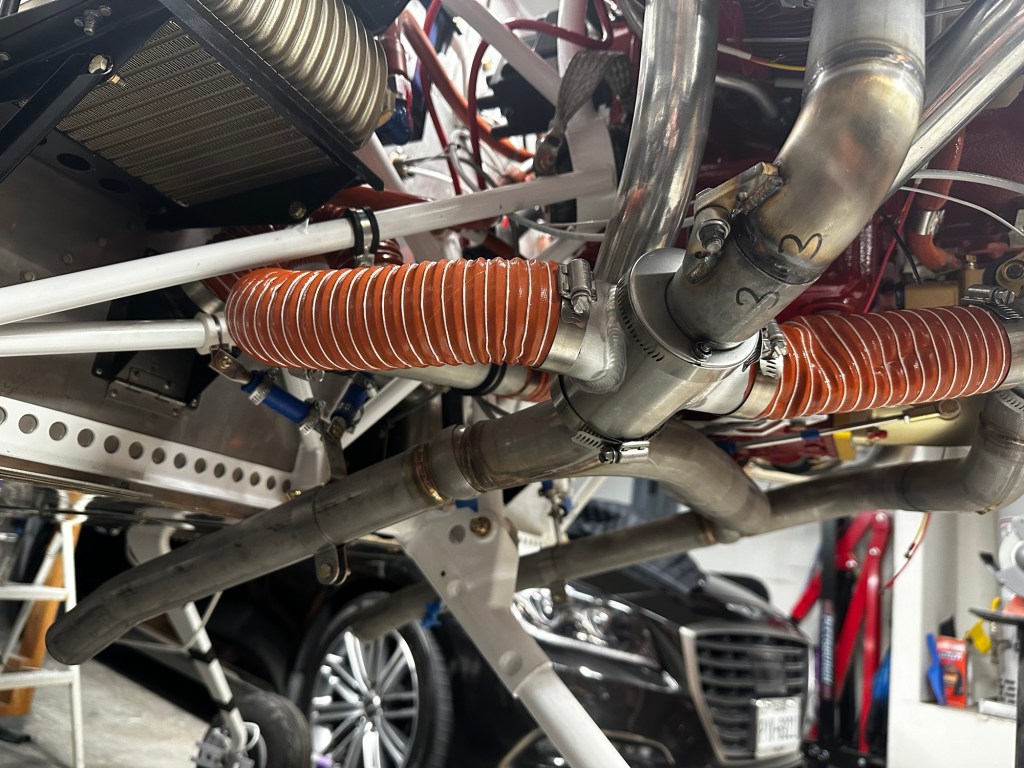 I originally ordered the exhaust as part of the Vans Aircraft kit. However, due to the Chapter 11 proceedings currently going on at Vans (they appears to be climbing out of it successfully), the exhaust system was continually delayed with no word on delivery. Plus, the price about doubled. So, I went to a small job shop called Vetterman’s Exhaust who make compatible systems. They delivered within a month at less than the price of the original exhaust from Vans. It is fully compatible and very much the same design.